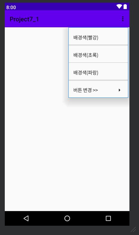 android:text="오른쪽 위 메뉴 버튼을 누르세요" />