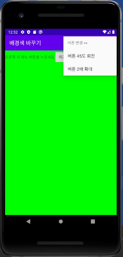 button1의 동작과 Layout의 색상을 변경하기 위해 onCreate 메소드에서 선언해주었습니다.