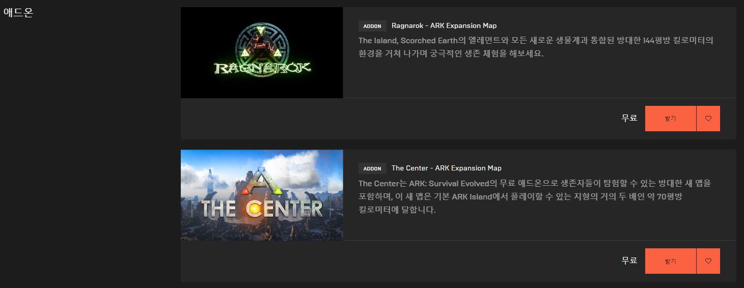 애드온이라는 녀석들이 더 있더라구요. 역시 모두 하나씩 받기 눌러줍시다.