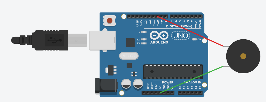 아두이노 우노 1개, 피에조 부저 1개로 구성되어 있습니다.
