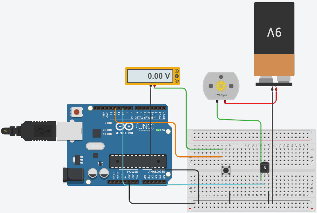 pinMode함수 두 개로 스위치와 트랜지스터 모드를 설정해주었고,