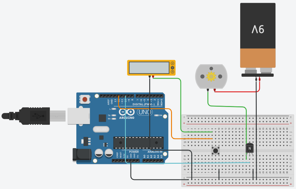 그리고, 버튼을 하나 추가해서 버튼을 누르면 모터가 작동되게 연결했습니다.