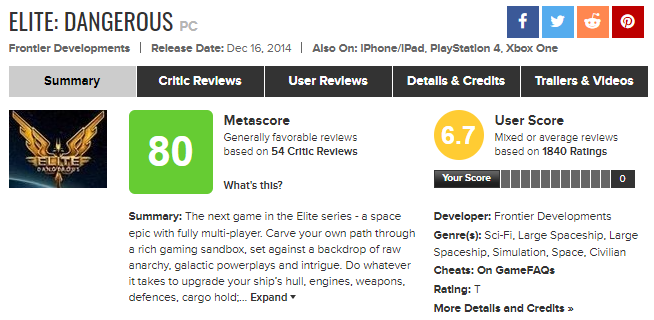 Take control of your own starship in a cutthroat galaxy. Elite Dangerous is the definitive massively multiplayer space epic, bringing gaming’s original open world adventure to the modern generation with an evolving narrative and the entirety of the Milky