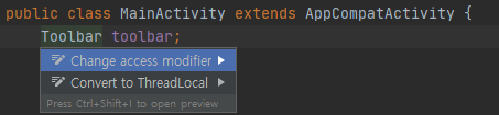 바로, 책에서는 Alt + Enter로 androidx.appcompat.widget.Toolbar를 import 시키라고 했는데요.